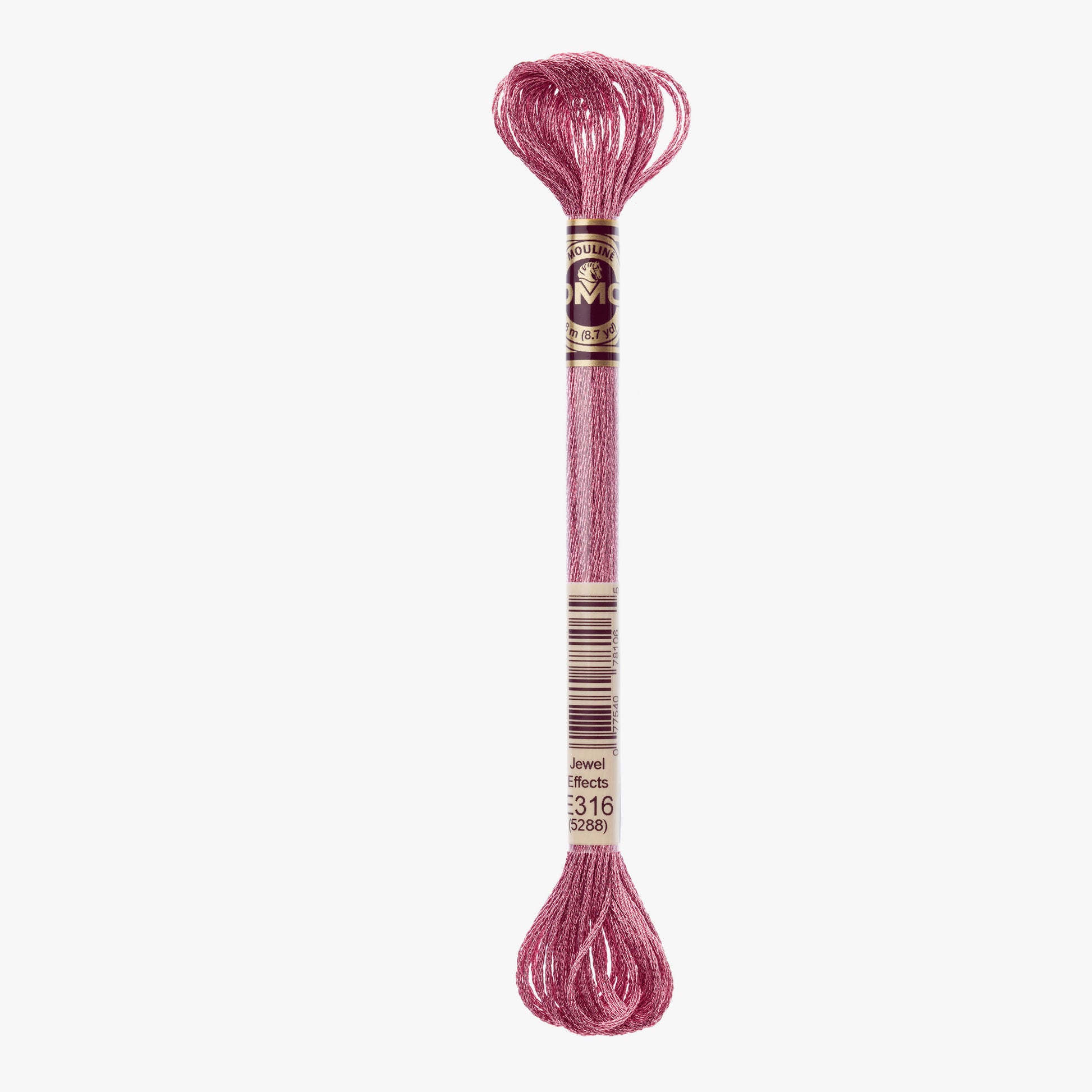 DMC Mouline Effet Lumière E316 Bringen Sie Ihre Stickerei zum Funkeln. Dieses Garn besteht zu 100 % aus Polyesterfasern und verleiht einen wirklich schönen metallischen Look. Die sechs Drähte lassen sich leicht trennen. Für ein wenig Glanz können Sie den Faden auch mit einem normalen Mouline Speciale kombinieren.
