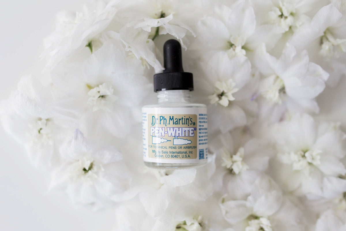 Der Dr. Ph. Martin's Pen White ist die beste deckende und weißeste Tinte im Shop. Die Tinte eignet sich sehr gut für die Verwendung mit Kalligraphie und Airbrush.
