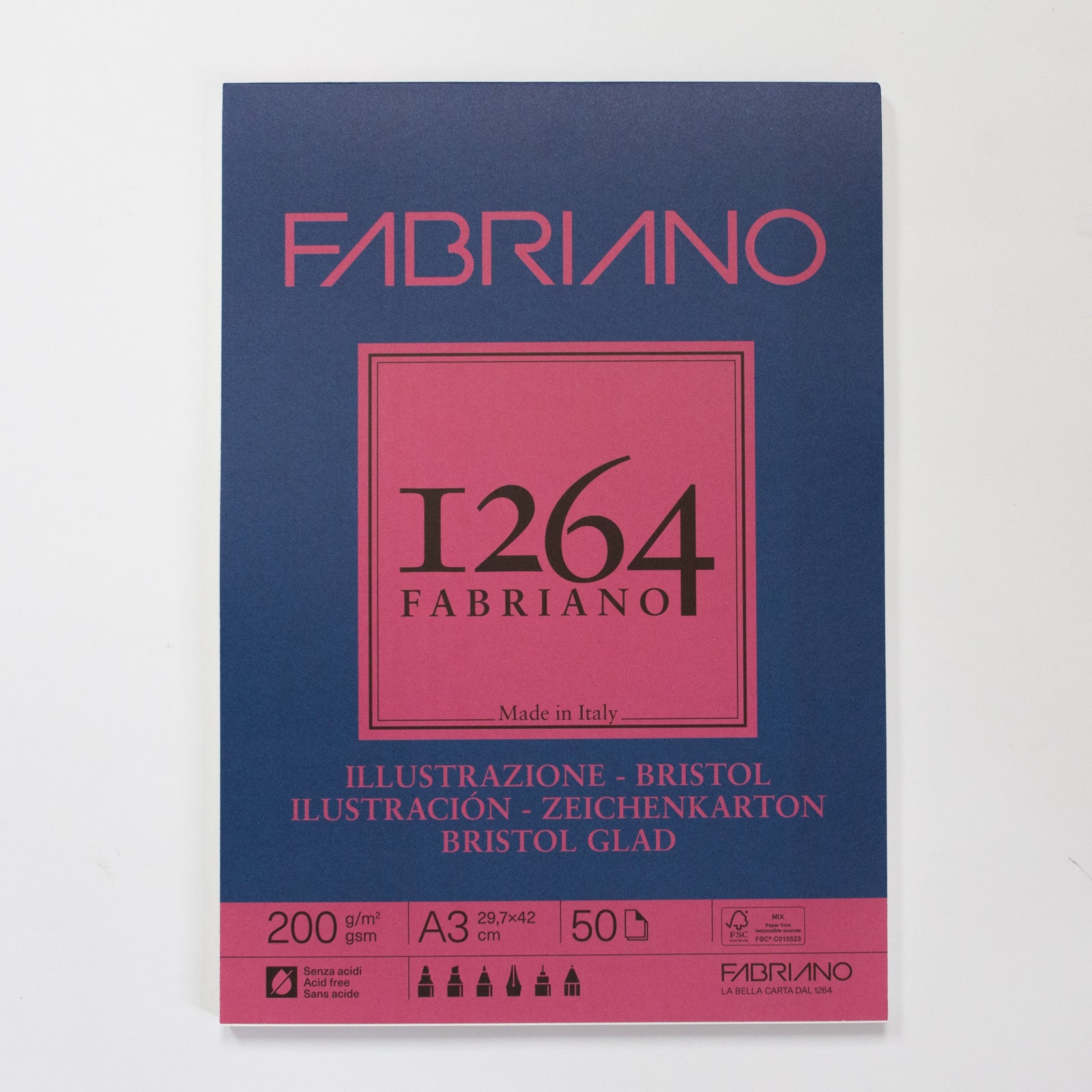 Fabriano 1264 bristolblok 50 vellen 200gr/m² 29,7x42cm (A3)