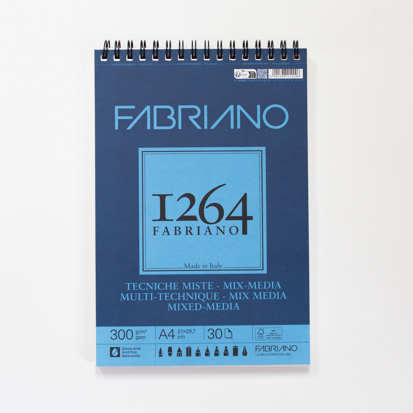 Fabriano 1264 mixed media blok met spiraal 30 vellen 300gr /m² 21x29,7cm (A4)