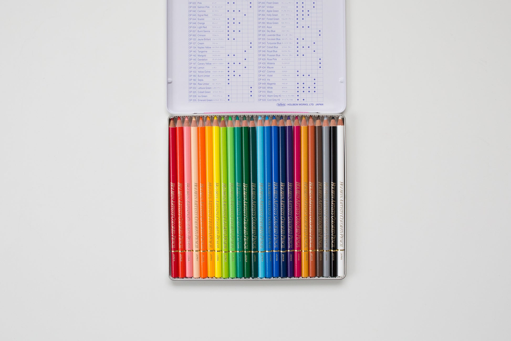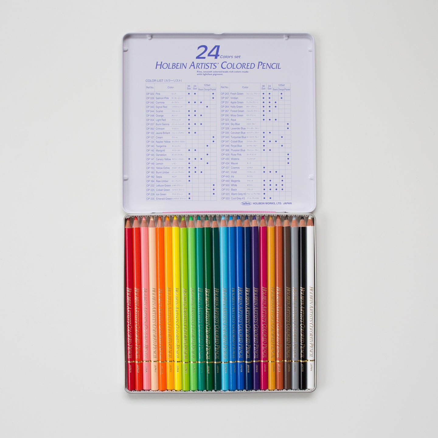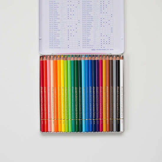 Dieses Set enthält 24 Holbein-Buntstifte.
