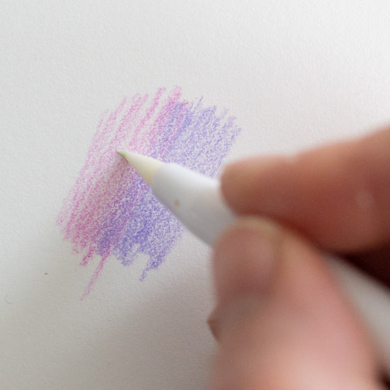 Machen Sie eine Zeichnung mit Ihren Holbein-Buntstiften wie gewohnt. Zufrieden mit dem Ergebnis? Führen Sie dann Ihren Stift über Ihr Design. Auf diese Weise lösen Sie die Farben auf und verleihen der Zeichnung einen echten Aquarelleffekt. Tipp: Drücken Sie die Kappe nach Gebrauch wieder gut auf den Stift, so hält er länger.