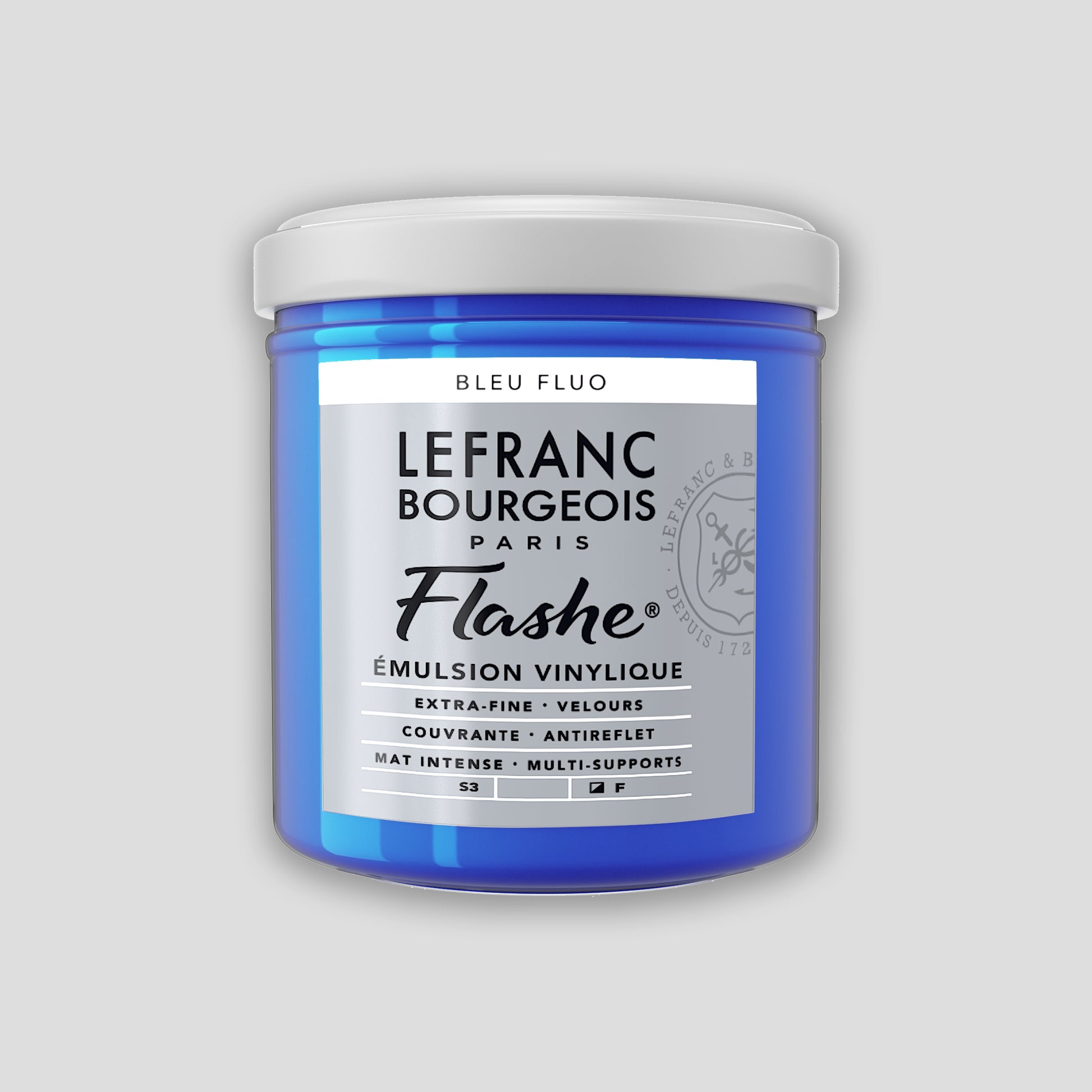 Flashe von Lefranc Bourgeois war die erste Alternative zu traditionellen Künstlermaterialien wie Ölfarbe. Flashe wird in Frankreich hergestellt und 1954 in der Welt der Malerei eingeführt. Es handelt sich um eine Farbe auf Vinylbasis, die an ihren matten Eigenschaften und ihrer Deckkraft erkennbar ist. Mit dieser Farbe können Sie auf jedem Maluntergrund malen.