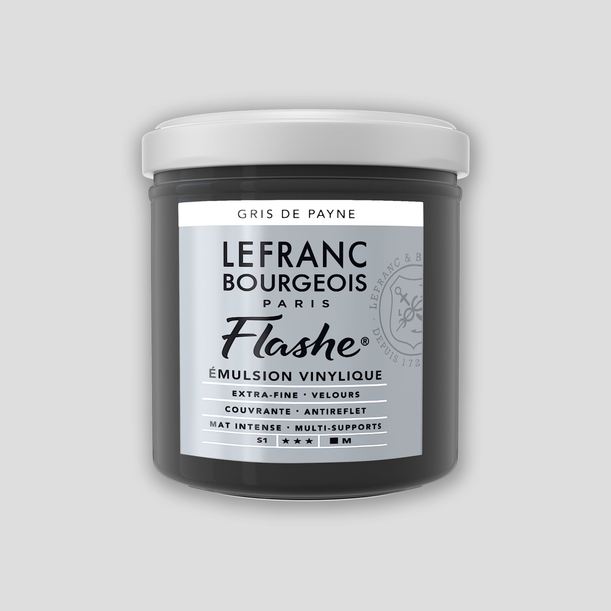 Flashe von Lefranc Bourgeois war die erste Alternative zu traditionellen Künstlermaterialien wie Ölfarbe. Flashe wird in Frankreich hergestellt und 1954 in der Welt der Malerei eingeführt. Es handelt sich um eine Farbe auf Vinylbasis, die an ihren matten Eigenschaften und ihrer Deckkraft erkennbar ist. Mit dieser Farbe können Sie auf jedem Maluntergrund malen.