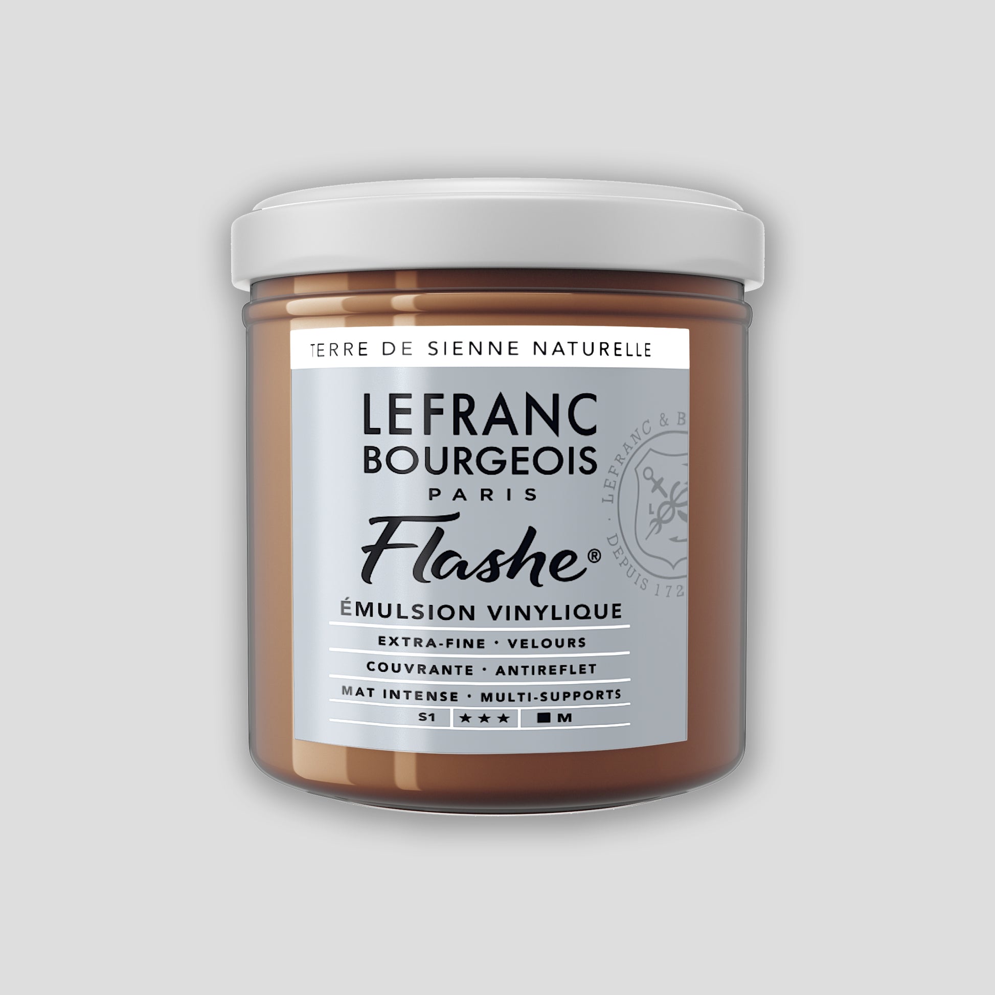 Flashe von Lefranc Bourgeois war die erste Alternative zu traditionellen Künstlermaterialien wie Ölfarbe. Flashe wird in Frankreich hergestellt und 1954 in der Welt der Malerei eingeführt. Es handelt sich um eine Farbe auf Vinylbasis, die an ihren matten Eigenschaften und ihrer Deckkraft erkennbar ist. Mit dieser Farbe können Sie auf jedem Maluntergrund malen.