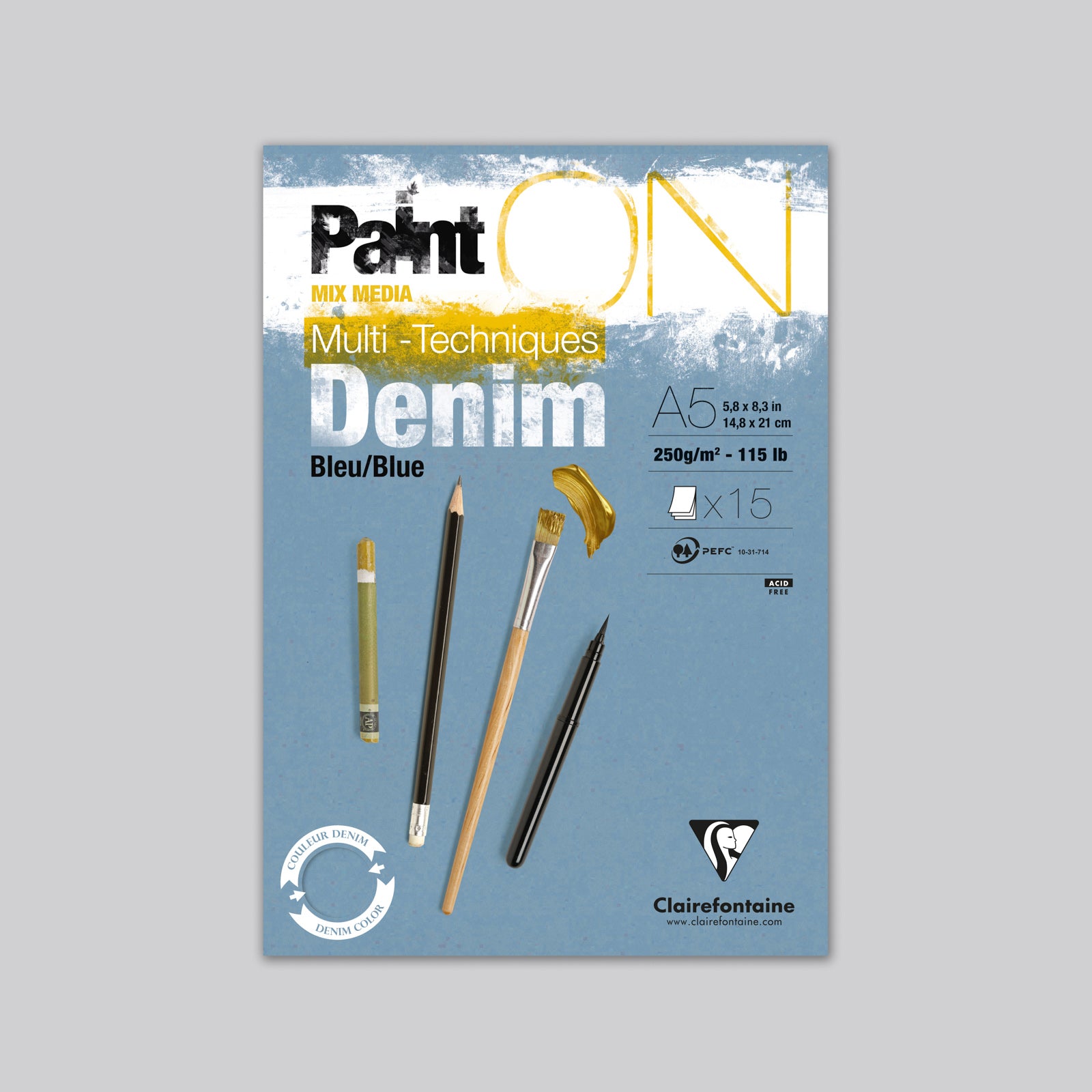 Paint'ON Mixed media 250g Blue denim A5 15 vellen