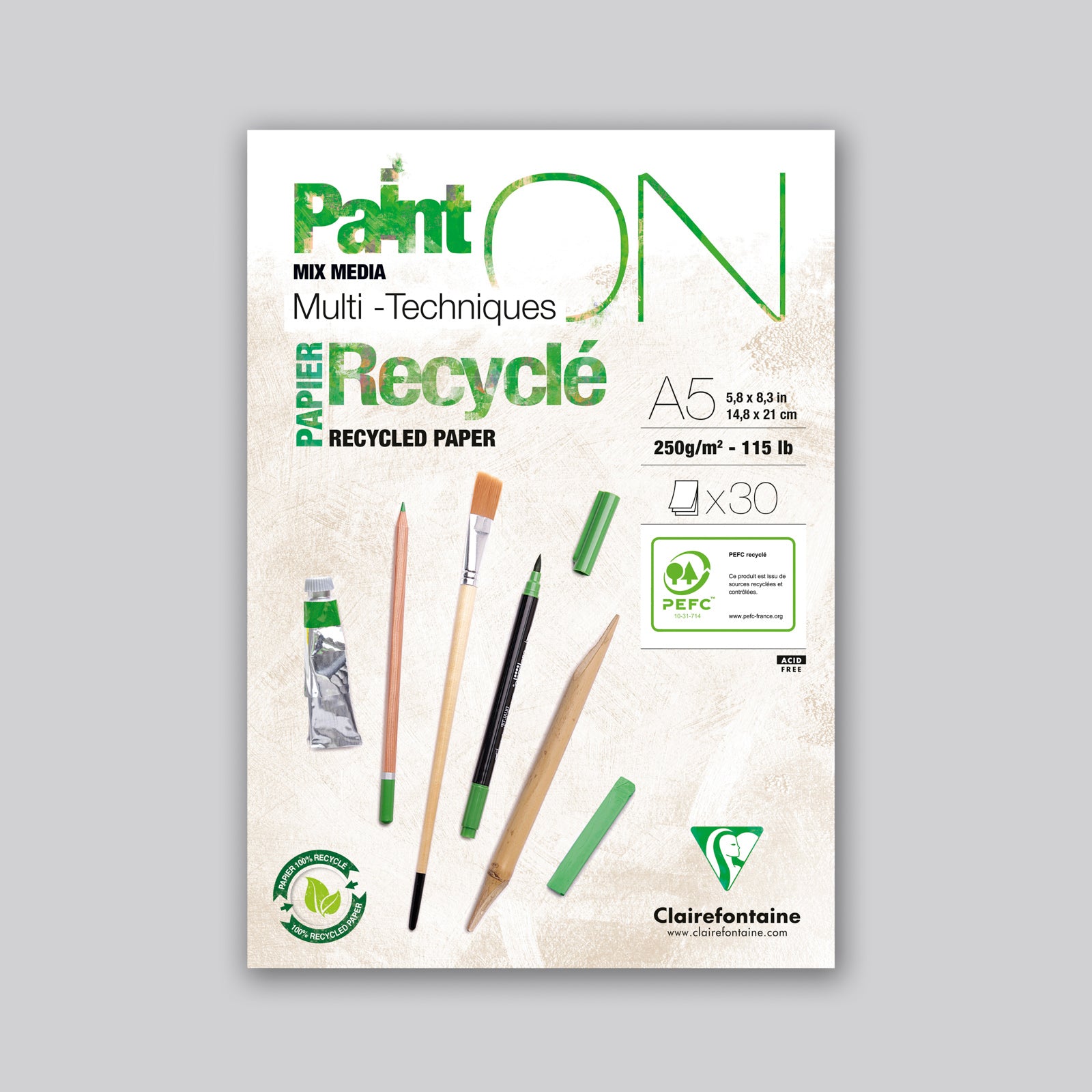 Paint'ON Mixed media 250g recycl. wit A5 30 vellen