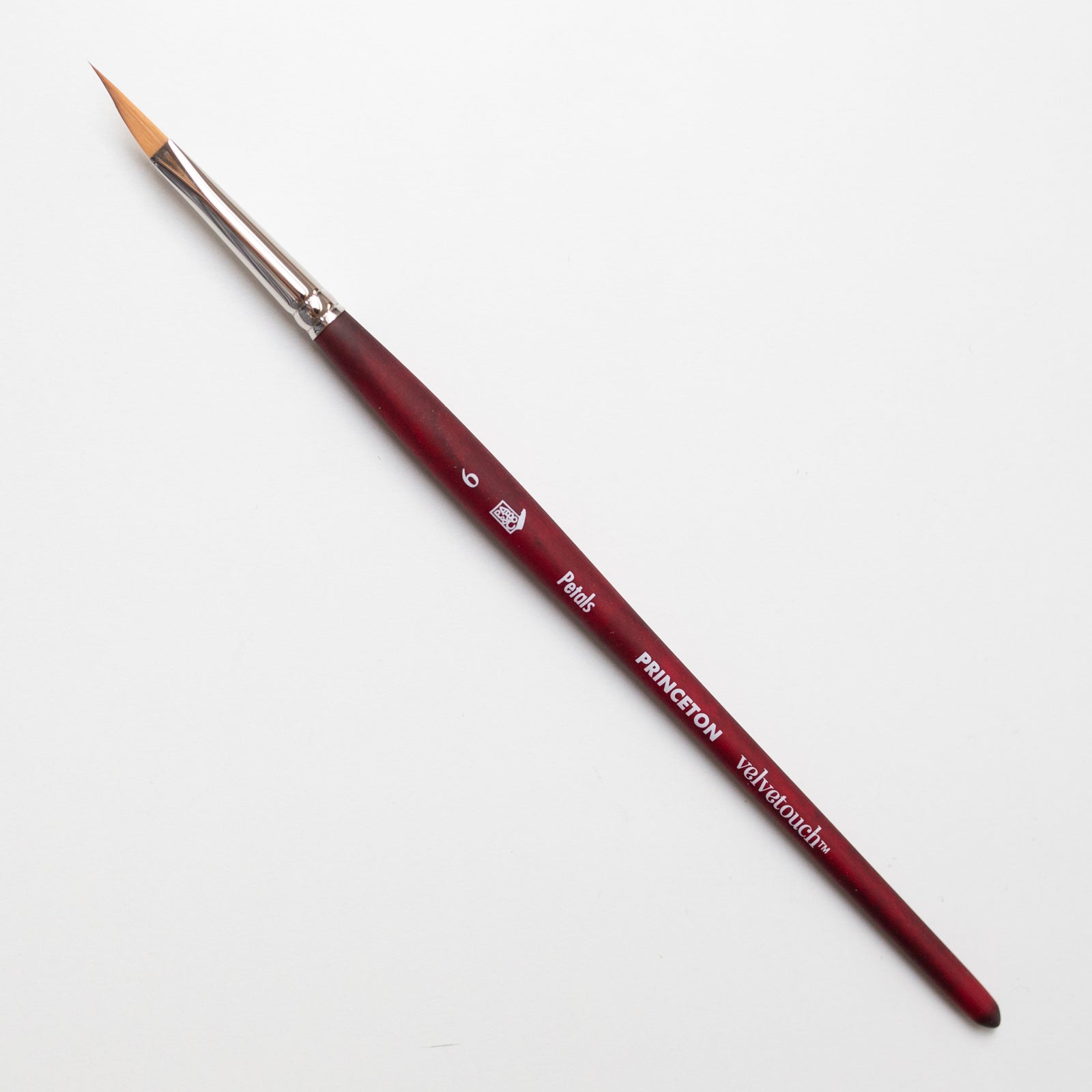 Der Princeton Velvetouch Petals 6 ist ein pyramidenförmiger Pinsel, der sich sehr gut zum Malen von Blättern eignet. Die Spitze ist sehr scharf und die Basis des Pinsels ist dreieckig.