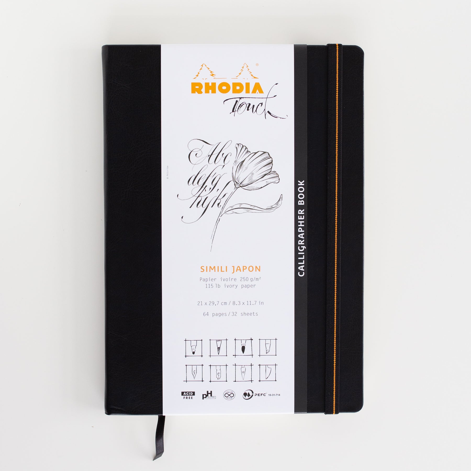 Die Rhodia Calligrapher-Bücher haben Simili Japan-Papier. Das bedeutet, dass das Papier glatt und glänzend ist. Dadurch eignet es sich perfekt für Kalligraphie- oder Tuschezeichnungen. Es funktioniert aber auch gut mit anderen Nasstechniken wie Gouache oder Aquarell.