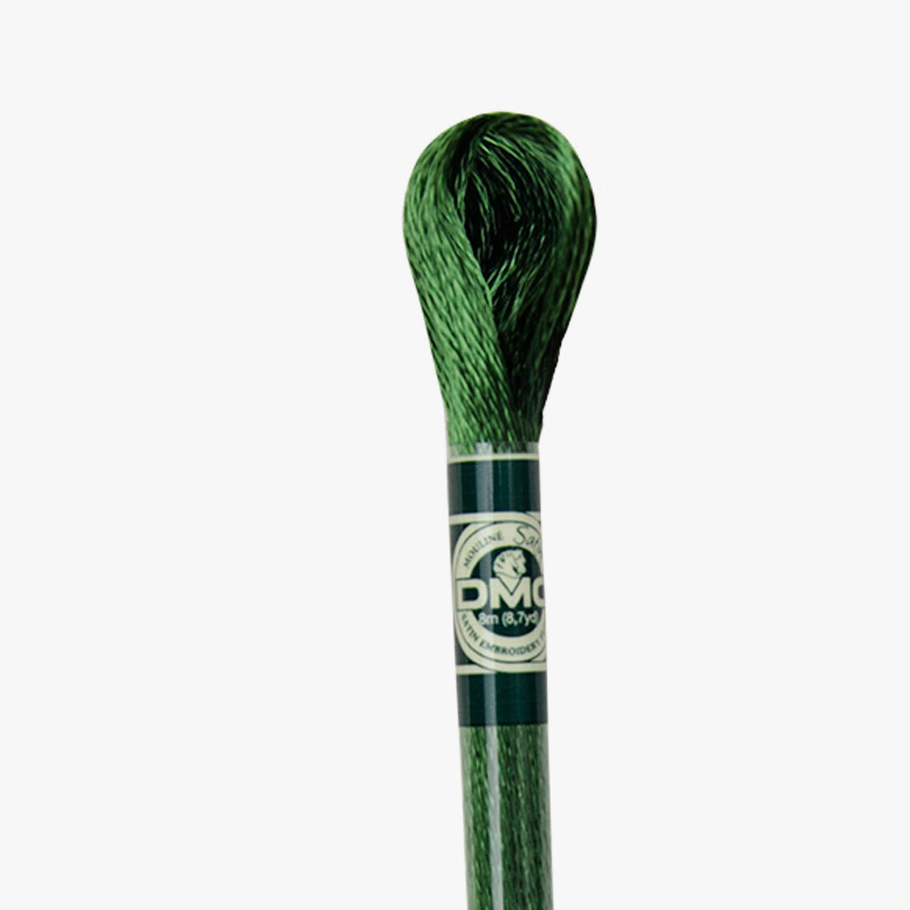 DMC Mouline Satin S367 is the most glossy DMC thread available. It is made from 100% rayon fiber and slides easily through the fabric.