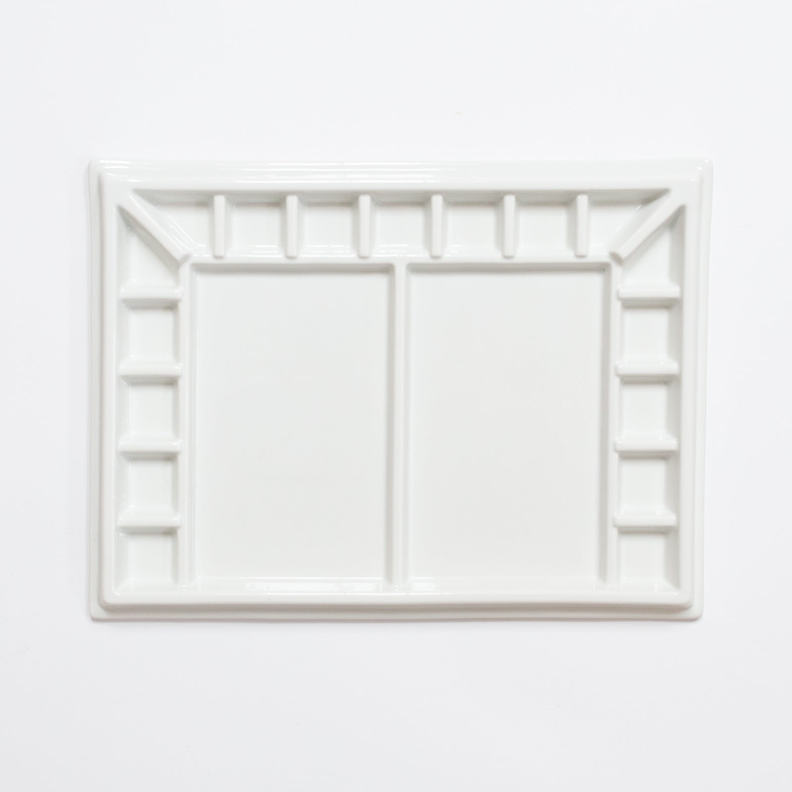 Groot porselein mengpalet 17 vakjes, en twee grote vakken.