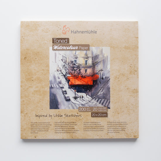 Hahnemuhle Toned Watercolor Block Beige 20x20cm is specially designed for urban sketchers. The pages have a light brown finish and a light grain. This ensures that your creations immediately get a very warm atmosphere!