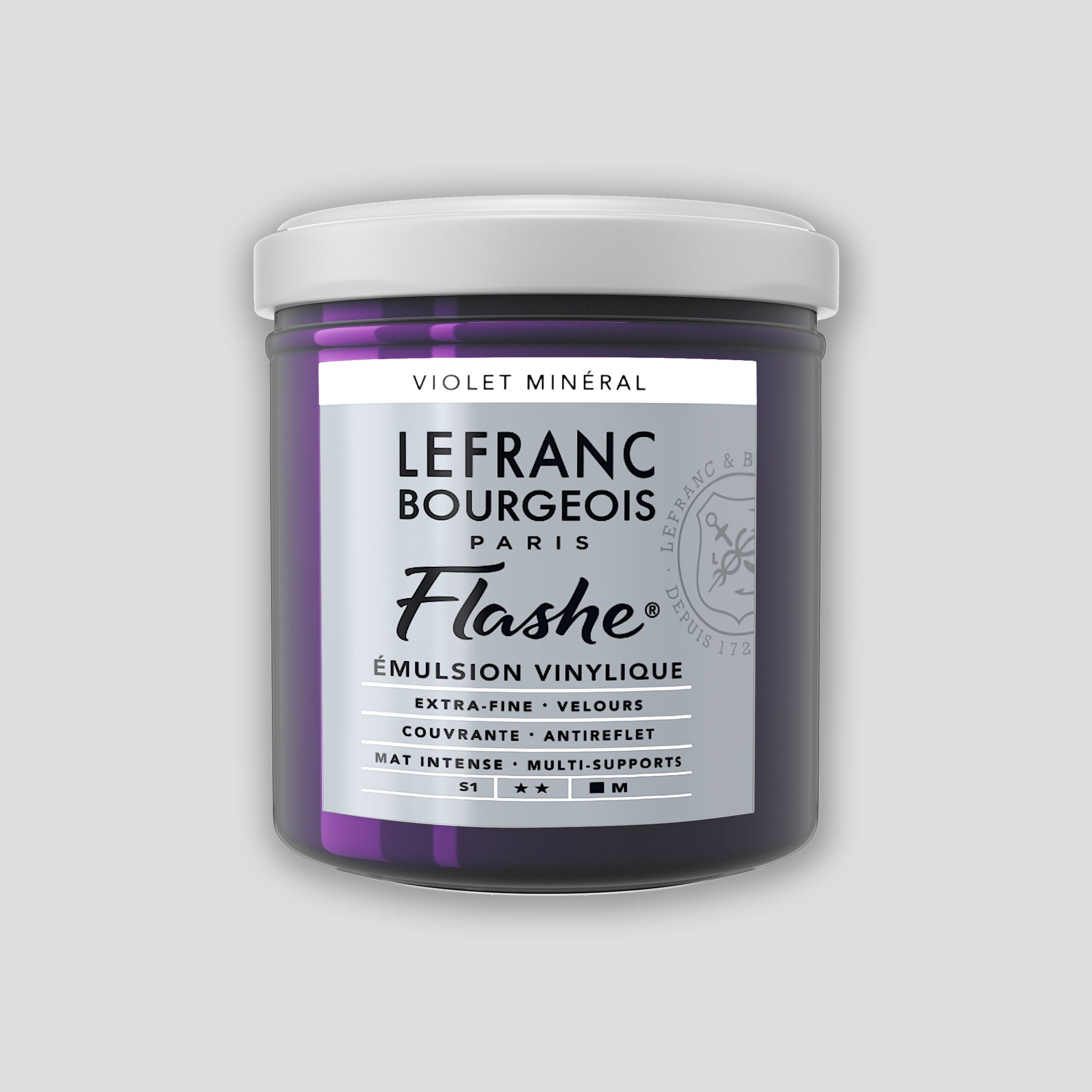 Flashe by Lefranc Bourgeois was the first alternative to traditional artists' materials such as oil paint. Flashe is made in France and was launched in the painting world in 1954. It is a vinyl-based paint, which is recognizable by its matt properties and opacity. With this paint you can paint on any painting surface.