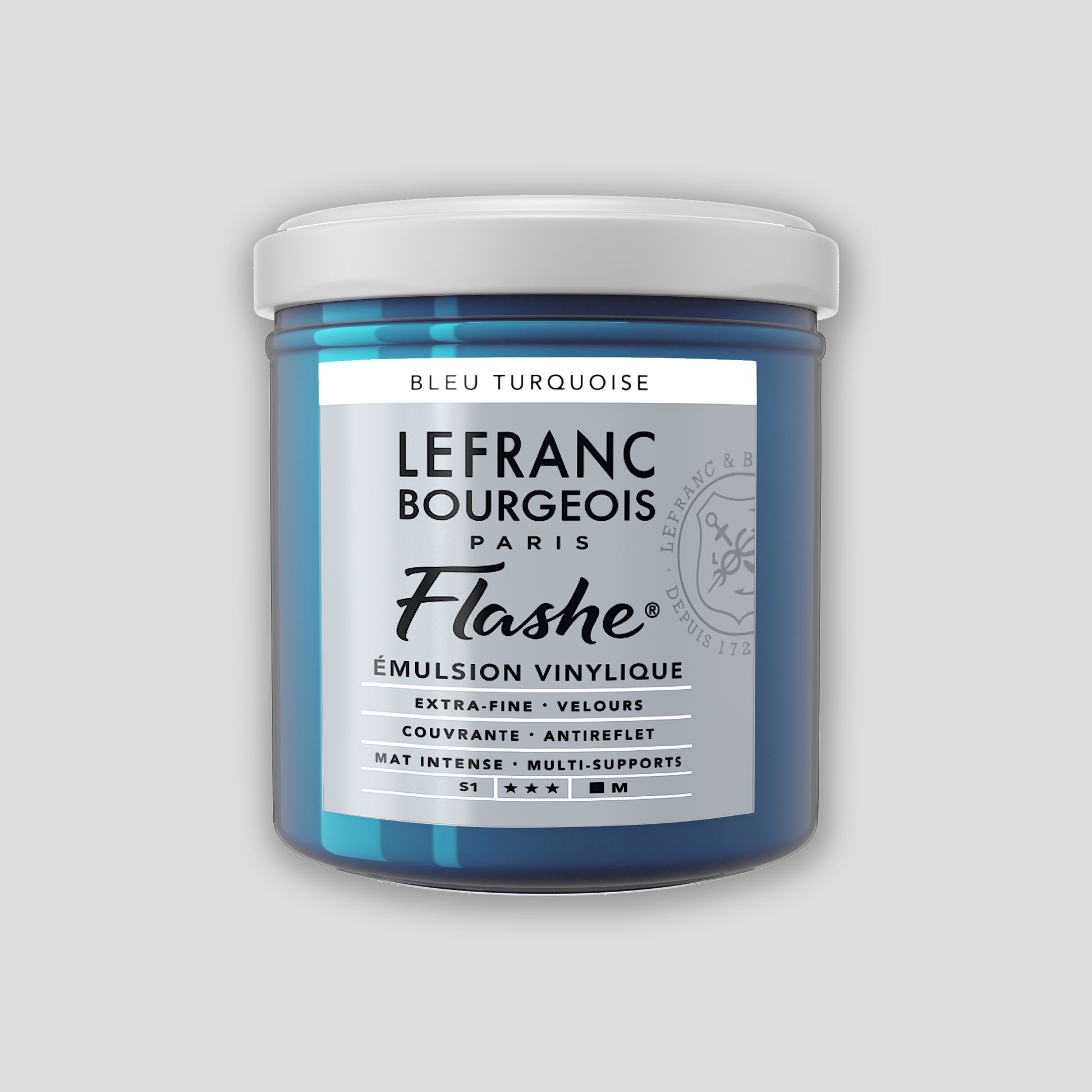 Flashe by Lefranc Bourgeois was the first alternative to traditional artists' materials such as oil paint. Flashe is made in France and was launched in the painting world in 1954. It is a vinyl-based paint, which is recognizable by its matt properties and opacity. With this paint you can paint on any painting surface.