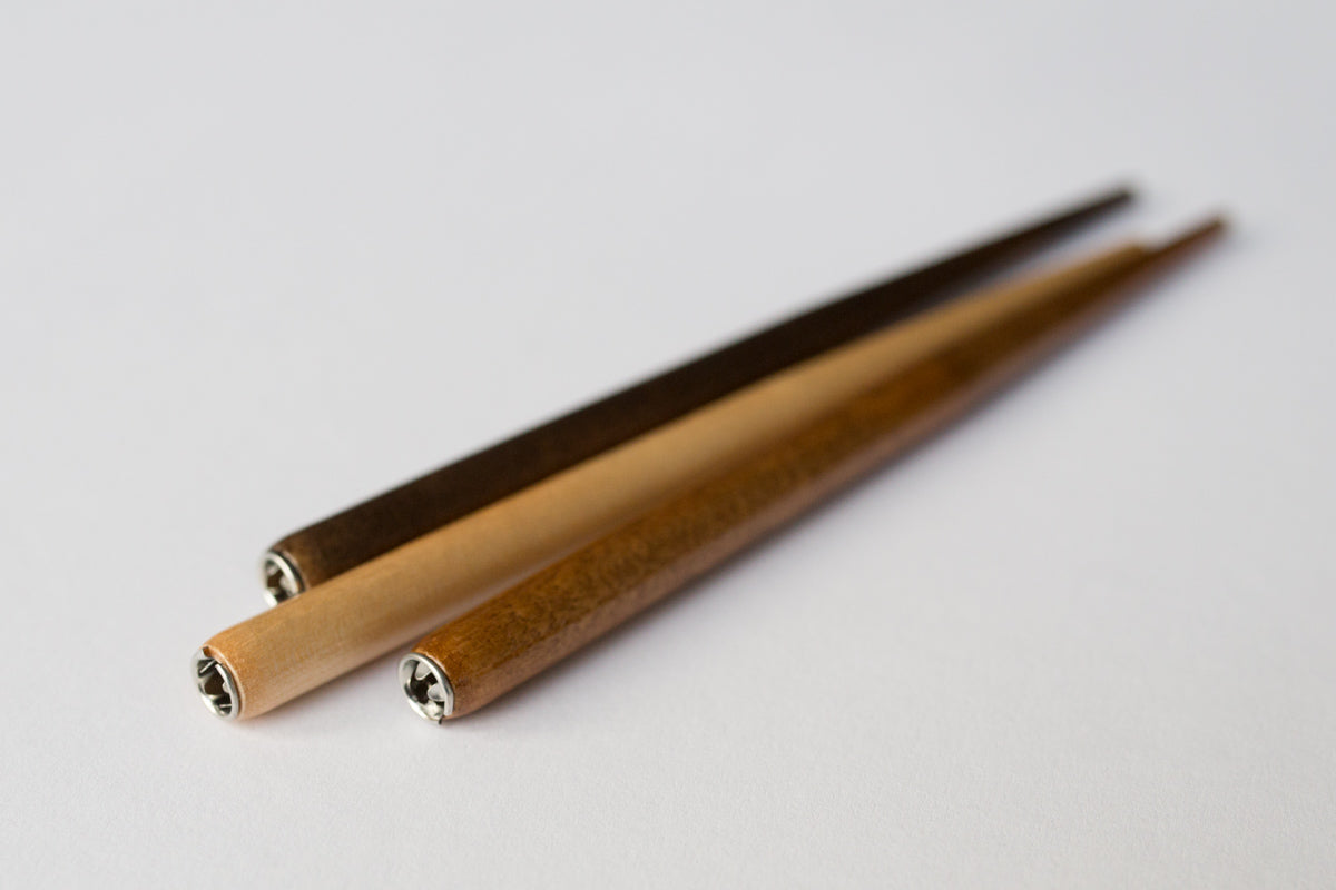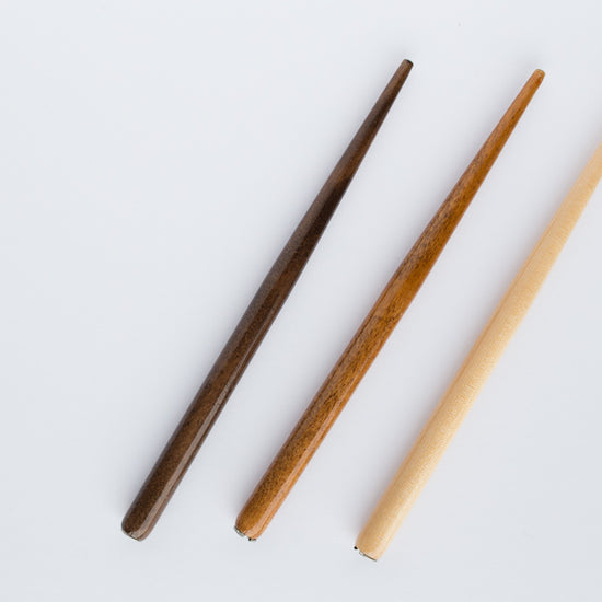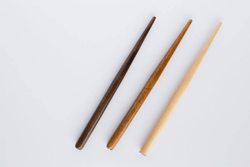 Stylish pen holders for a great price. You can adjust the nib holder so that your nib fits properly through the metal opening. Choose your calligraphy pen holder in light, medium, or dark wood.