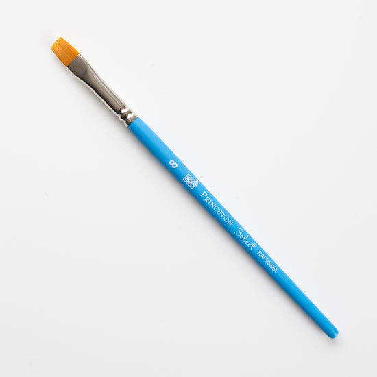 The hairs of this Princeton Select Flat Shader 8 are of medium length. Use the wide side to color large areas and the side to make thin lines.