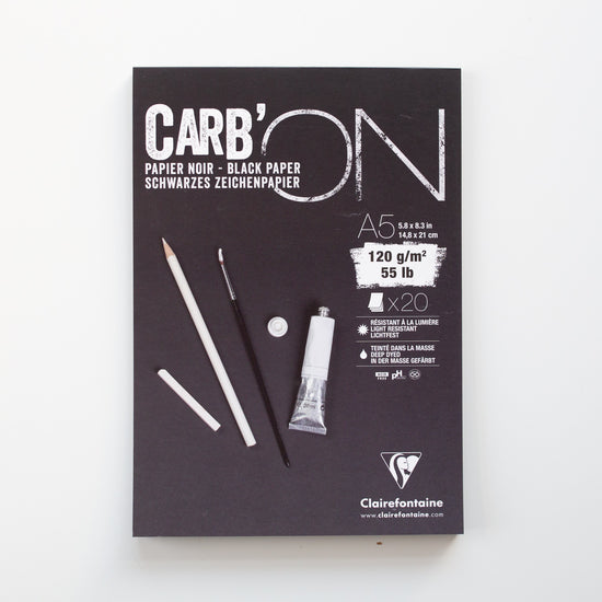 A drawing pad with 20 sheets of black paper , firmly glued on the short side. Fine: the paper is not too heavy and very suitable for working with dry materials such as marker, chalk and pencil. The paper is a beautiful matte black and has a very light structure.