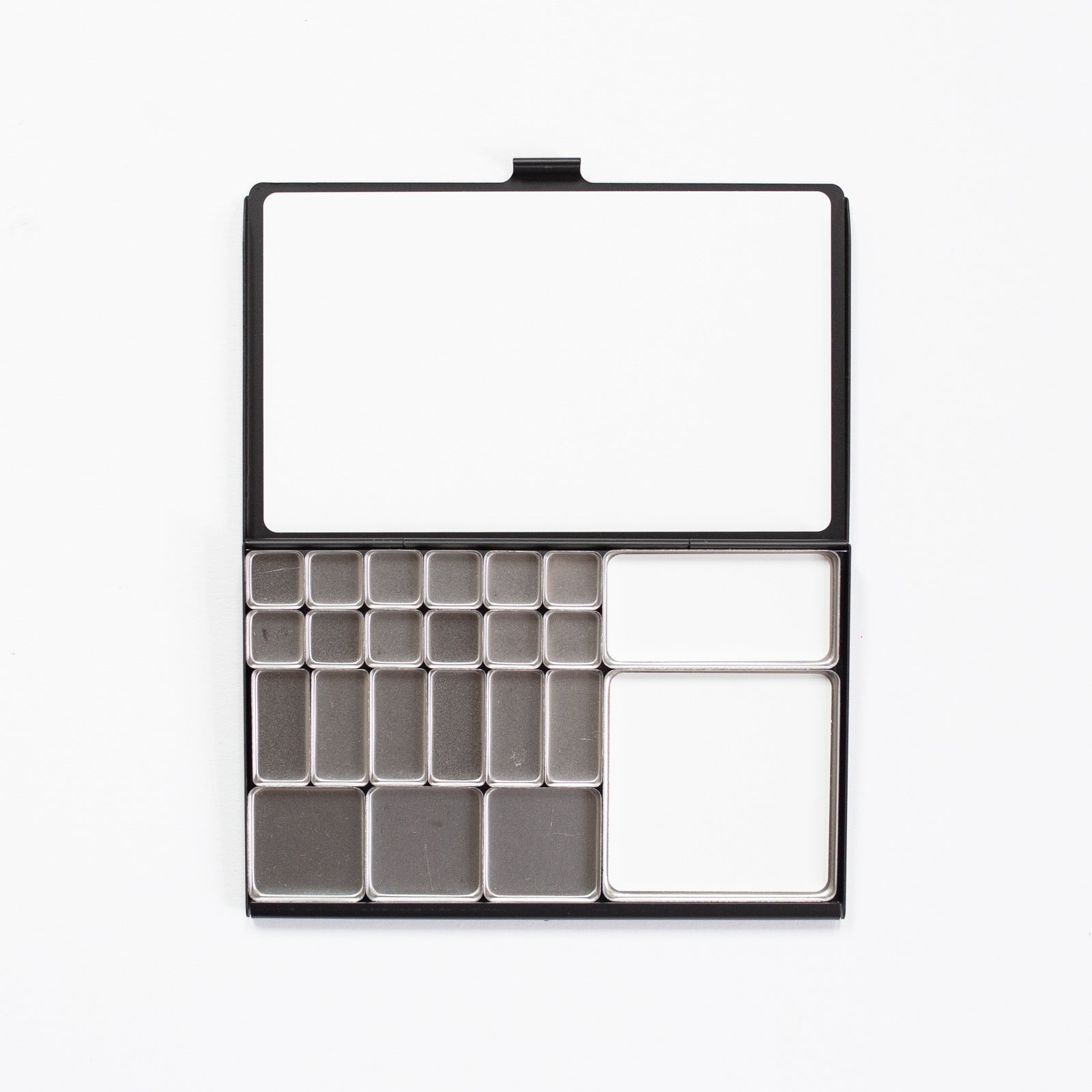Pocket: Dubbel zo groot als de Demi, hierin passen 28 mini pans of een mix naar keuze. Deze is 92x64x7mm (45gr) als het palet gesloten is.