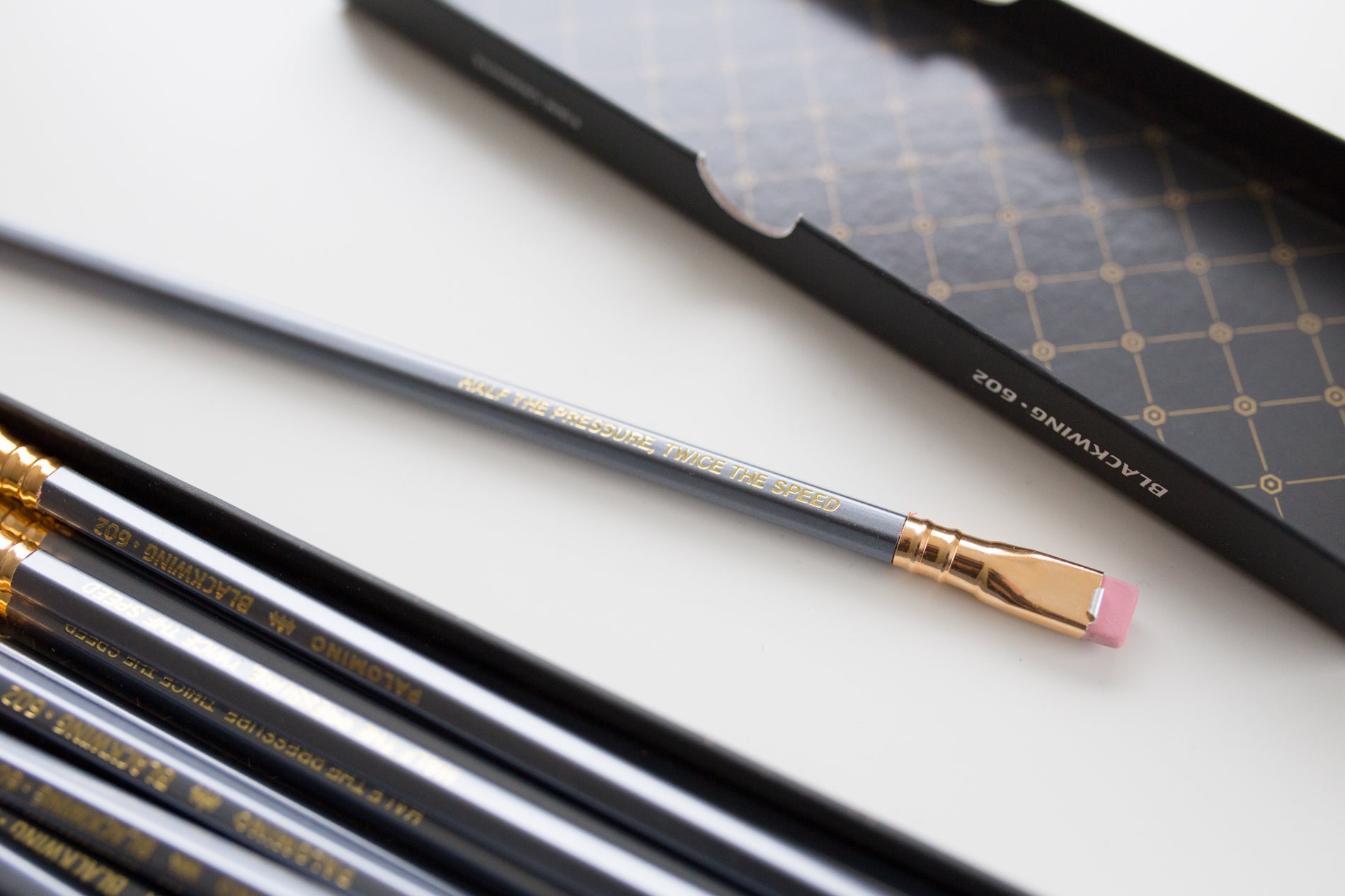 Het Blackwing 602 potlood is het hardste grafietpotlood van de Blackwing reeks. Dit potlood kan je vergelijken met een 2B potlood. Het potlood is ideaal om mee te schrijven. Als je terugkijkt naar de geschiedenis van Blackwing komt dit potlood het meest overeen met het originele Blackwing potlood.