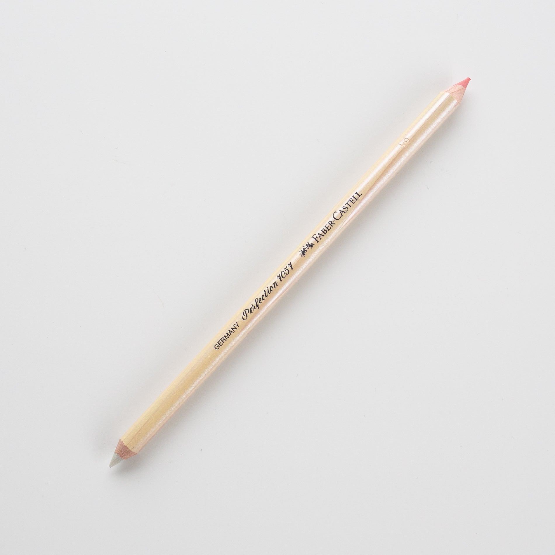 Het potlood heeft twee verschillende gummen, een rode en een witte kant. De rode kant is wat zachter en is perfect voor het uitgummen van kleurpotlood en grafiet. De hardere witte gum wordt gebruikt voor ink, indian inkt en de inkt van een balpen.