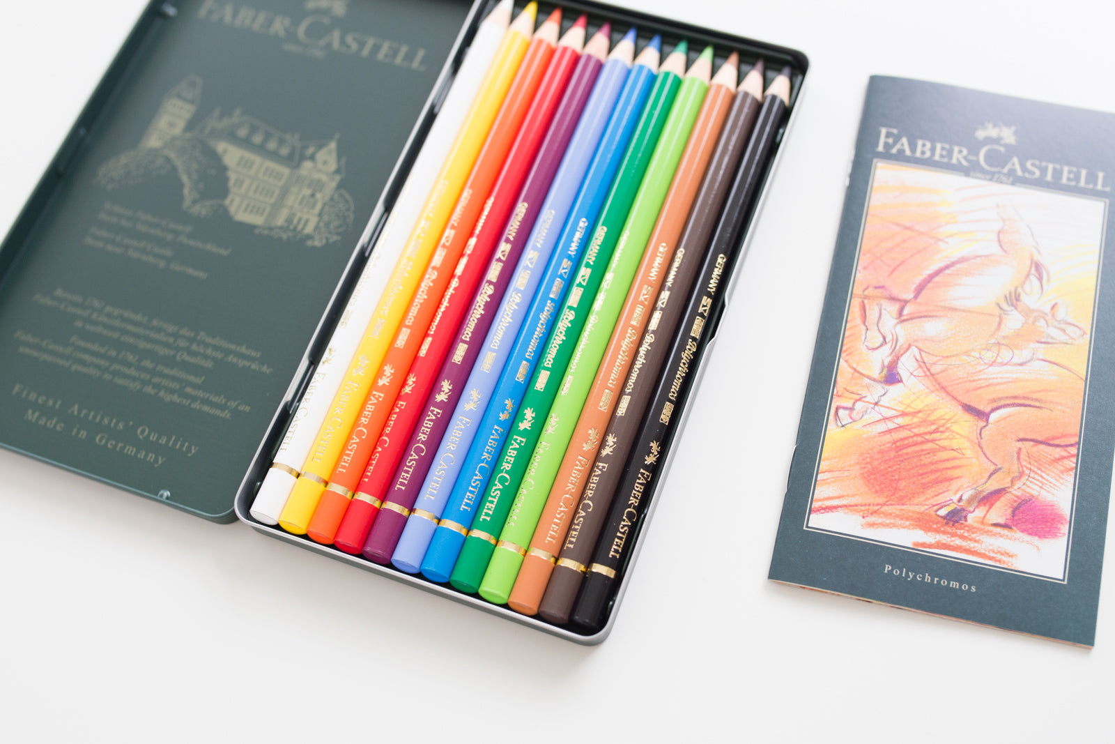 Kleurpotloden van Faber-Castell Polychromos zijn van hoogwaardige kwaliteit. De potloden bevatten veel pigment, geven een goede dekking en zijn makkelijk te blenden. De kern van een Polychromos potlood is harder dan van de meeste andere potloden. Het potlood wordt gewaardeerd omdat de punt lang scherp blijft, maar het potlood niet té hard is. Precies een fijne combinatie dus!