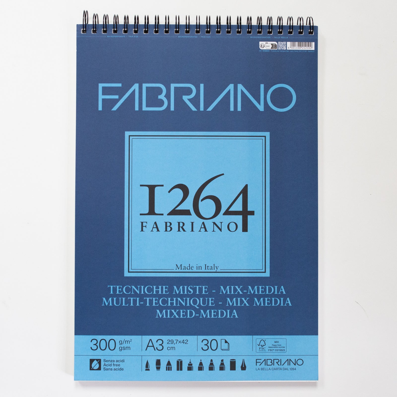 Fabriano 1264 mixed media blok met spiraal 30 vellen 300gr /m² 29,7x42cm (A3)