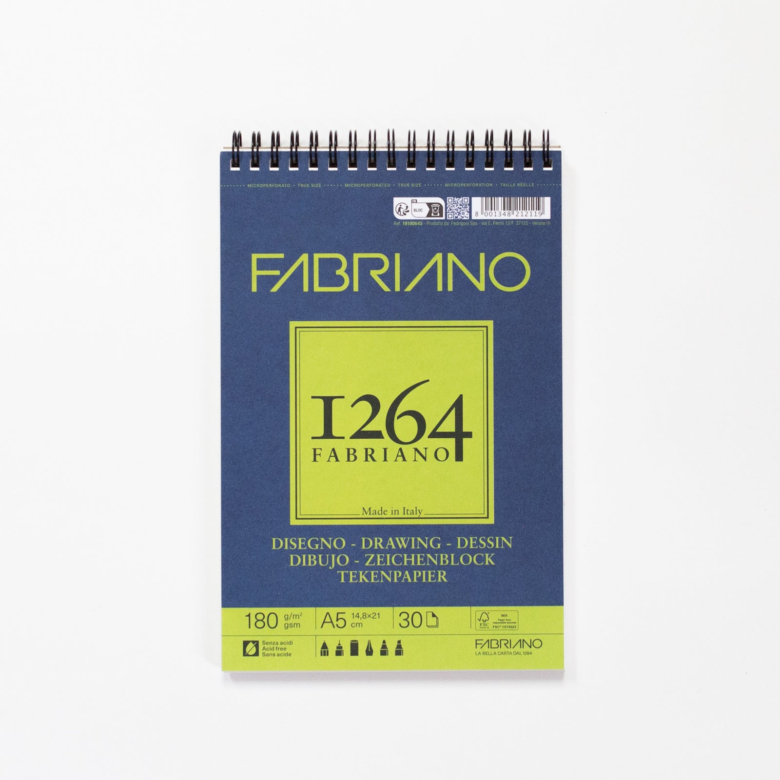 Fabriano 1264 tekenblok met spiraal 30 vellen 180gr/m² 14,8x21cm (A5)