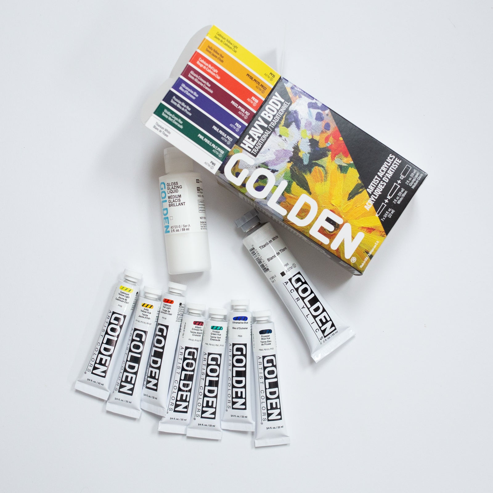 Golden Heavy Body set 7x22ml + White 59ml + Glazing liquid gloss