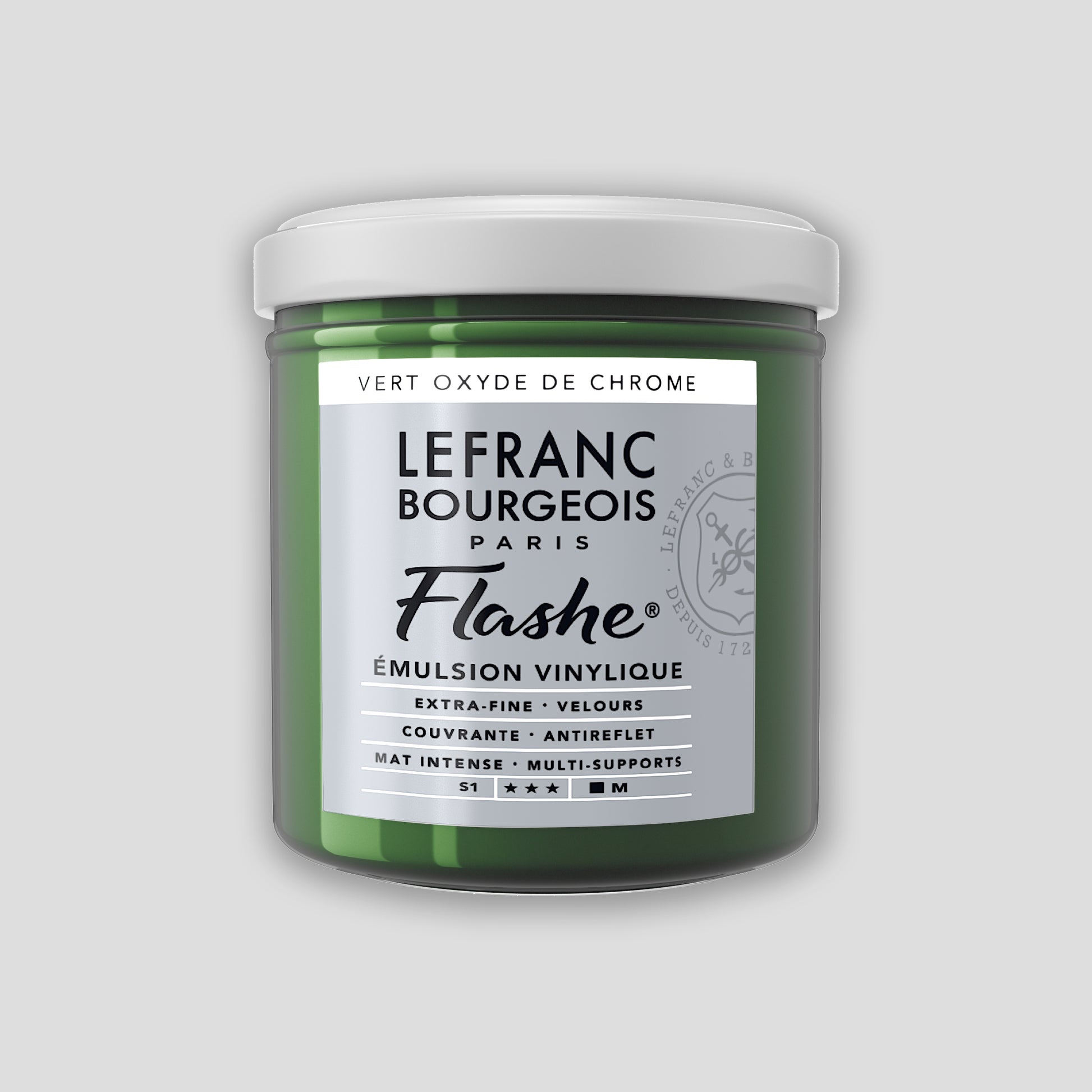 Flashe van Lefranc Bourgeois was het eerste alternatief voor traditionele kunstenaars materialen zoals olieverf. Flashe wordt gemaakt in Frankrijk en werd in 1954 gelanceerd in de schilderswereld. Het is een verf op vinylbasis, die herkenbaar is door de matte eigenschappen en dekkracht. Met deze verf kan je op elk schilderoppervlakte schilderen.