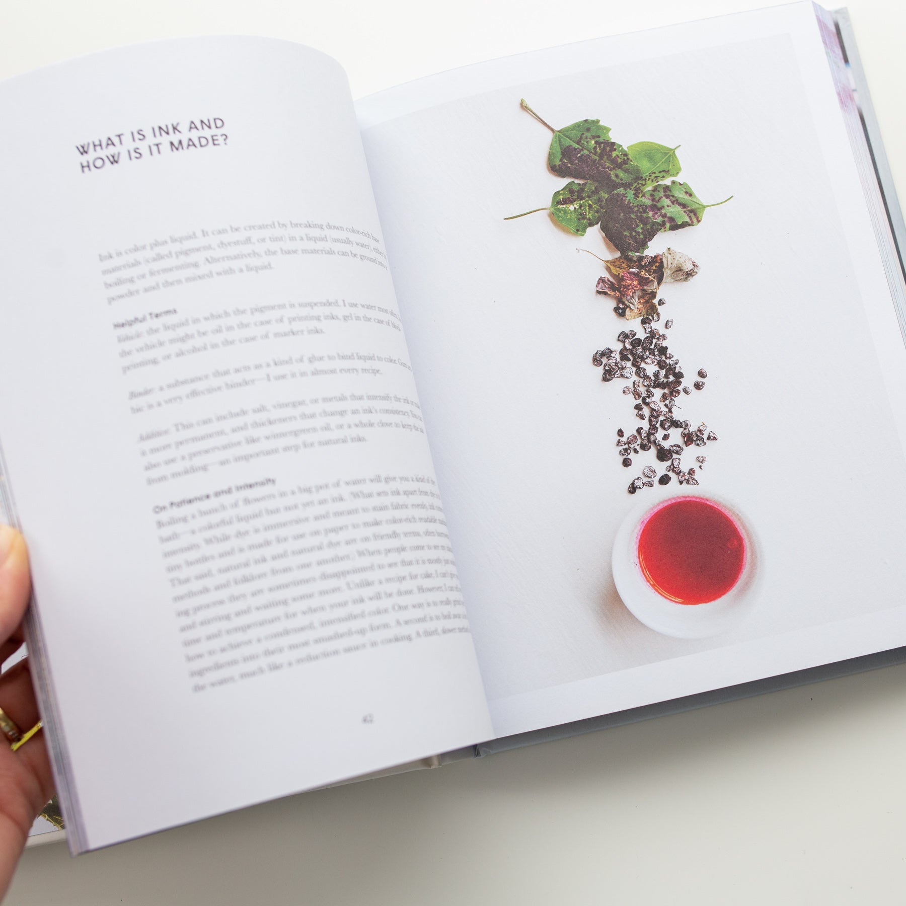 In het boek leer je hoe je ingredienten kunt mengen, testen en omzetten in een rijke levendige kleur. Make Ink is geillustreerd door prachtige fotografie. Door een combinatie van wetenschap, kunst en ambacht leer je de basisprincipes van het maken van inkt.