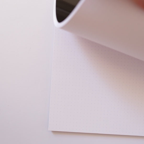 Rhodia papier is favoriet bij kalligrafen en handletteraars. Het papier is wit, glad en heeft dots, hetzelfde als je in een bulletjournal ook hebt. De puntjes geven je guidelines wanneer je in een mooi sierschrift wil schrijven. Het grote voordeel van dit papier is dat dit bleedproof is. Je inkt zal niet in het papier 'bloeden'. Ideaal dus om op te oefenen!