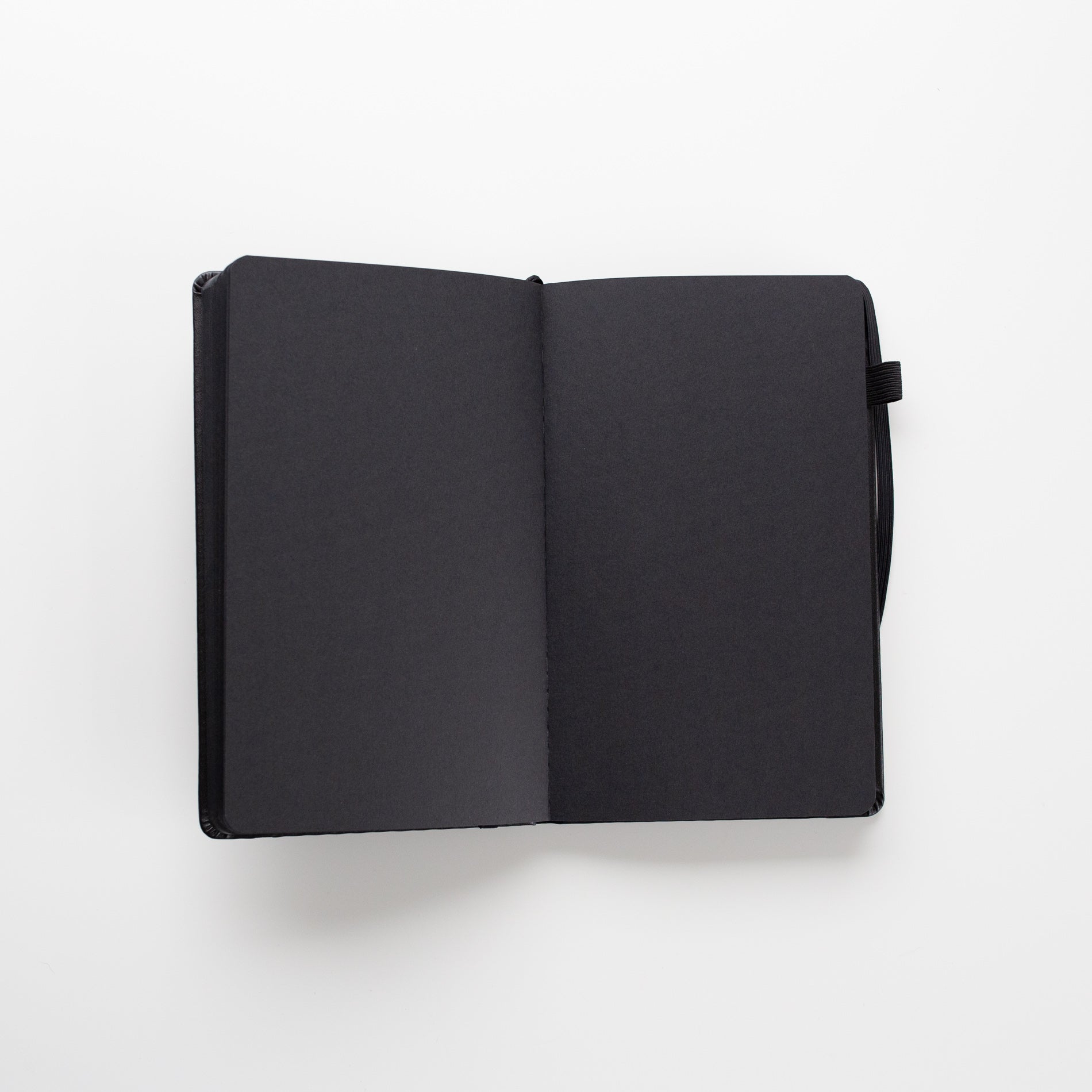 Het schetsboekje heeft een penhouder van elastiek, een leeslint een een envelopje achterin.