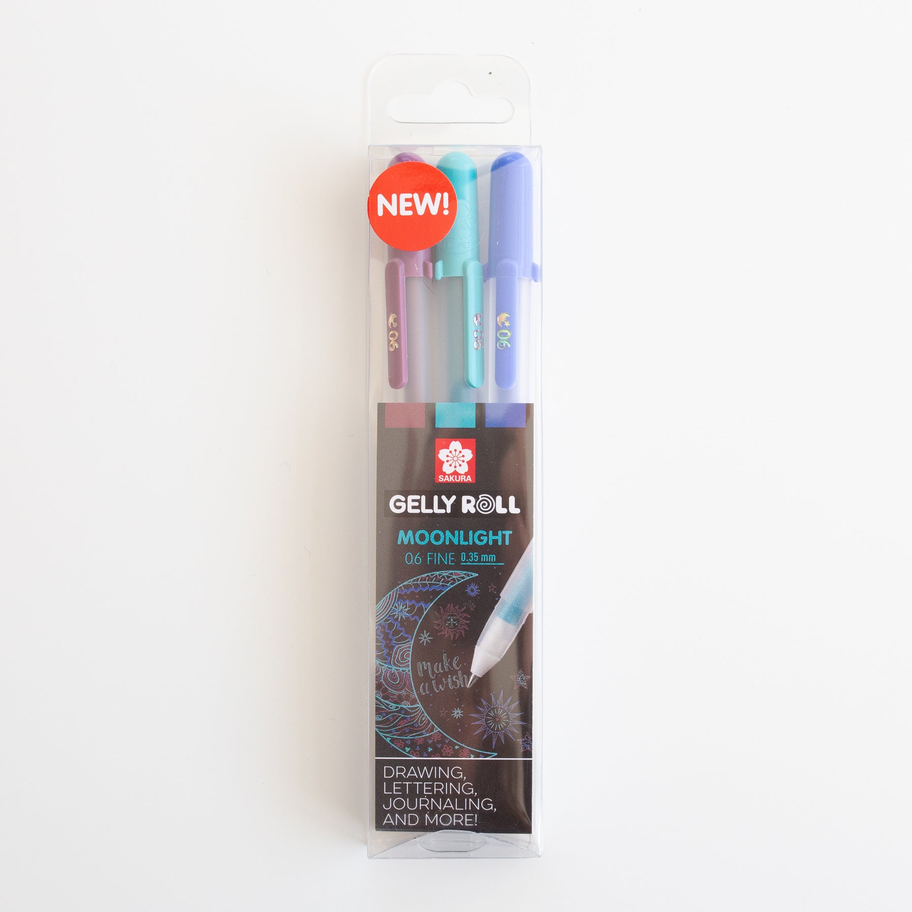 De Sakura Gelly Roll Moonlight Galaxy set van 3 stuks in de dikte 06. Deze pennen schrijven met een dikte van 0,3mm.